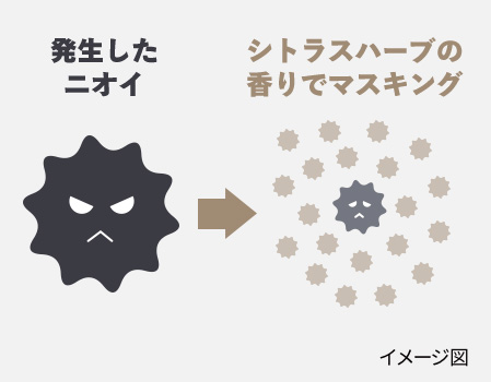 独自配合した爽快感のあるシトラスハーブの香りで、発生した頭皮のニオイを