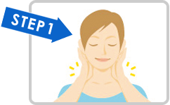 左右の首筋に指をあて、ゆっくりと円を描きながら両肩まで下ろします。コリコリとしたかたまりがあれば、指先を軽くあて、クルクルと円を描きながらマッサージします。