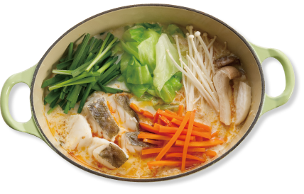 ④①を加え、タラと野菜に火が通るまで煮て、完成。
